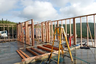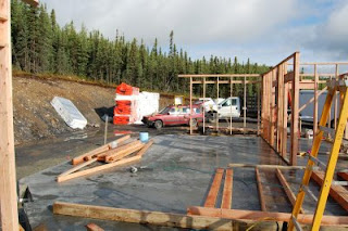 Like turning a heal on a sock, the driveway now has a turn.  It will have about a 10% slope.  We initially envisioned having the house further along the side of the road, but at that distance the driveway was going to cost a lot to build.  It would also be a lot of upkeep to remove snow!